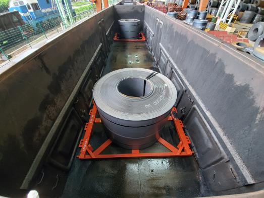 L型卷鋼立裝座架可有效解決鋼廠使用一次性裝載加固材料進(jìn)行卷鋼立裝帶來的材料浪費(fèi)與環(huán)境污染問題,降低工人勞動強(qiáng)度并提高裝車效率。同時,兩個型號的立裝座架的混合裝車方案,可實(shí)現(xiàn)立裝座架一次裝載2至7卷卷鋼的多種裝載方案,適用的卷徑范圍更加寬泛,可有效解決使用座架時僅能裝運(yùn)兩卷卷鋼帶來的重車不能滿載的情況,以及運(yùn)輸效率低,成本高等常見問題。L型立裝座架在敞車卷鋼立裝方案中的使用,將為用戶帶來更大的經(jīng)濟(jì)效益。