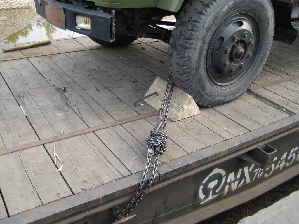 目前,我國(guó)鐵路軍事車(chē)輛運(yùn)輸大都采用鐵線、絞棒和三角擋的捆綁加固,這種捆綁加固方法難以適應(yīng)現(xiàn)代化戰(zhàn)爭(zhēng)軍事運(yùn)輸?shù)男枰?。我們研制的杠桿式鏈條緊固器是適應(yīng)現(xiàn)代化戰(zhàn)爭(zhēng)快速反應(yīng)所需要捆綁緊固裝置,它用來(lái)替代鐵線、絞棒和三角擋木加固。杠桿式鏈條緊固器由固定連桿、活動(dòng)連桿、緊固杠桿(手柄)、鉸接環(huán)、環(huán)形掛鉤和鏈條組成。各零部件均采用合金鋼制造,鏈條與連桿采用球型鉸接方式連接。它通過(guò)掛鉤鏈條的鏈節(jié)掛接形成環(huán)型捆綁,掛鉤與不同鏈節(jié)的掛接可調(diào)整環(huán)型捆綁鏈條的松緊,然后利用杠桿的原理通過(guò)對(duì)緊固杠桿(手柄)加力帶動(dòng)活動(dòng)連桿及鏈條對(duì)貨物實(shí)施捆綁緊固。適用于我國(guó)鐵路軍用輪式裝備運(yùn)輸?shù)睦壖庸獭?/span>