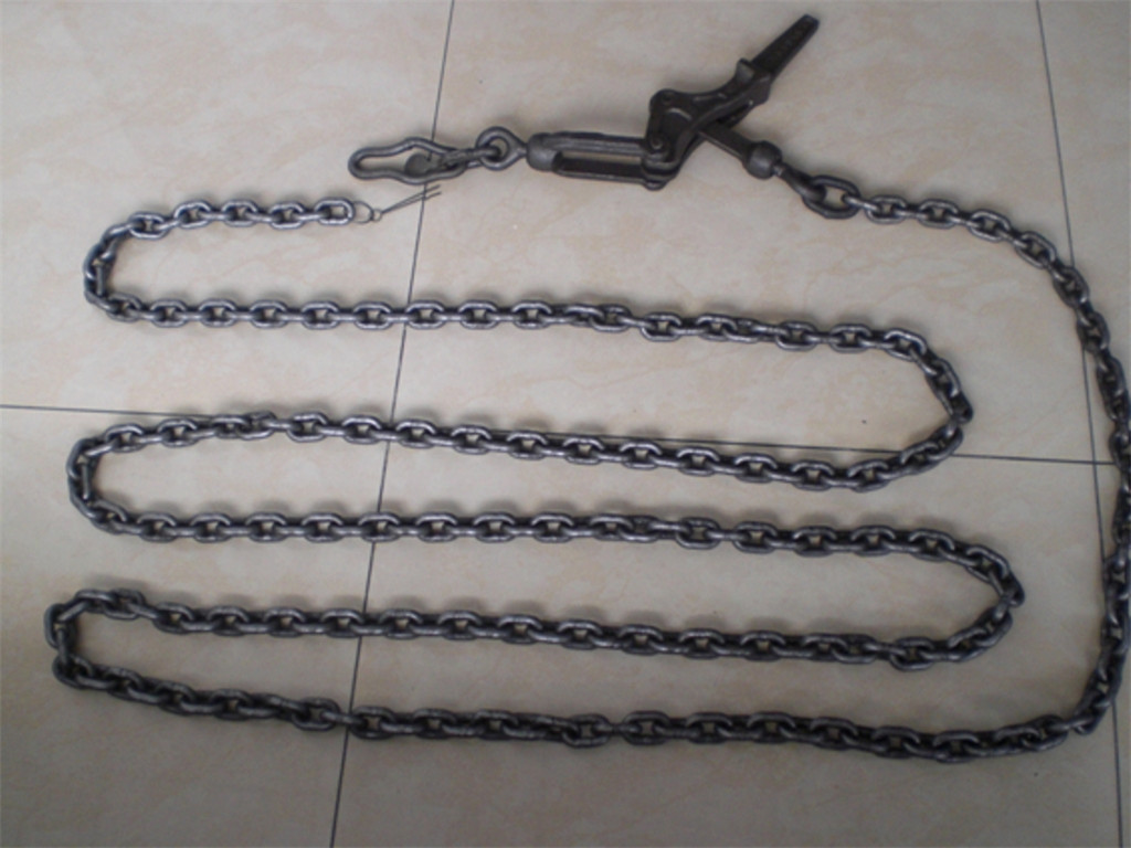 Lever Type Chain tightener consists of fixed link, active link, Fastening lever (handle), hinge ring, ring hook and chains, chains and links are hinged together, all the components are made of alloy steel. Depended on lever principle, it can tighten links and chains by pulling the fastening lever.